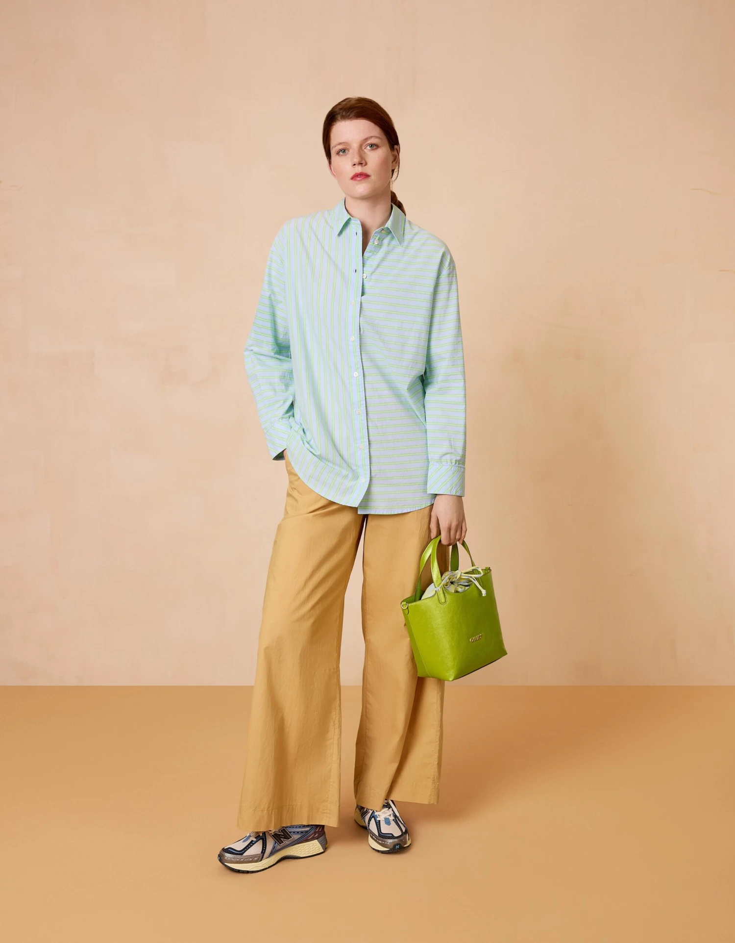 Met katoen geweven blouse met strepen die verticaal en horizontaal gaan en emaille knoopjes waarvan twee net even anders zijn. De loose fit van dit lange model maakt het ideaal om te dragen als je voor een relaxte stijl gaat.