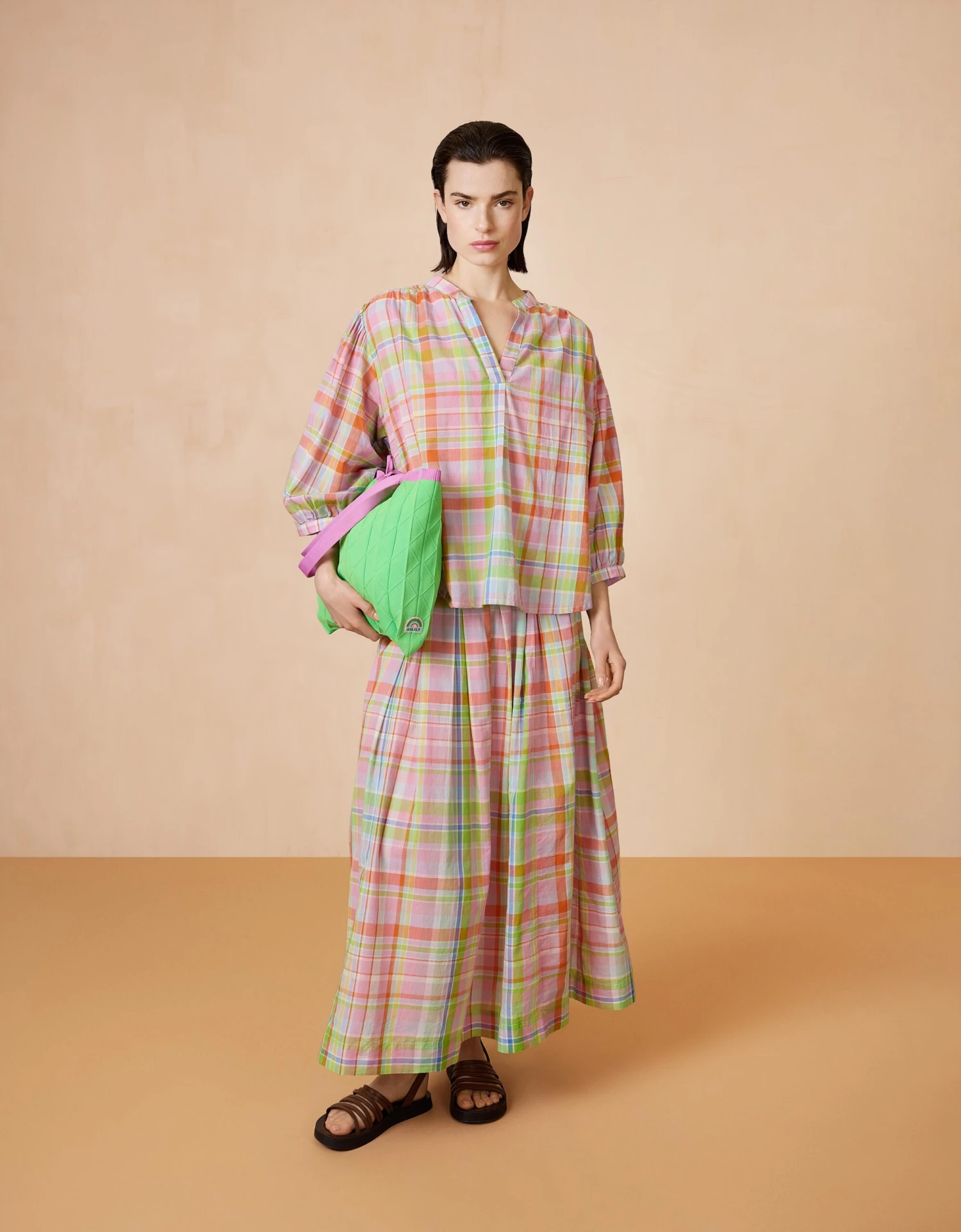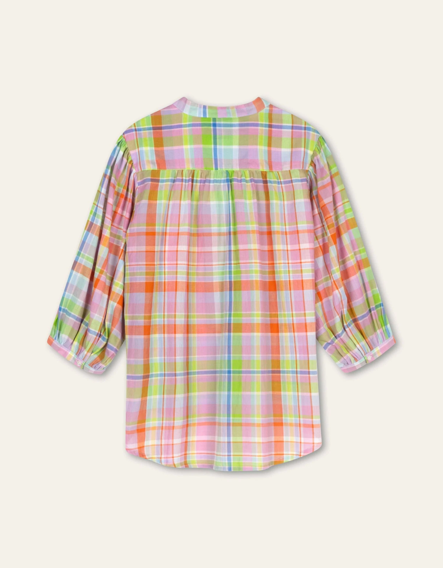 Deze tuniek blouse is een waar feestje om te dragen. Een heerlijke blouse met yarn-dyed ruitjes van ons dessin Merry Meadow Check voor zachte voorjaarsdagen.