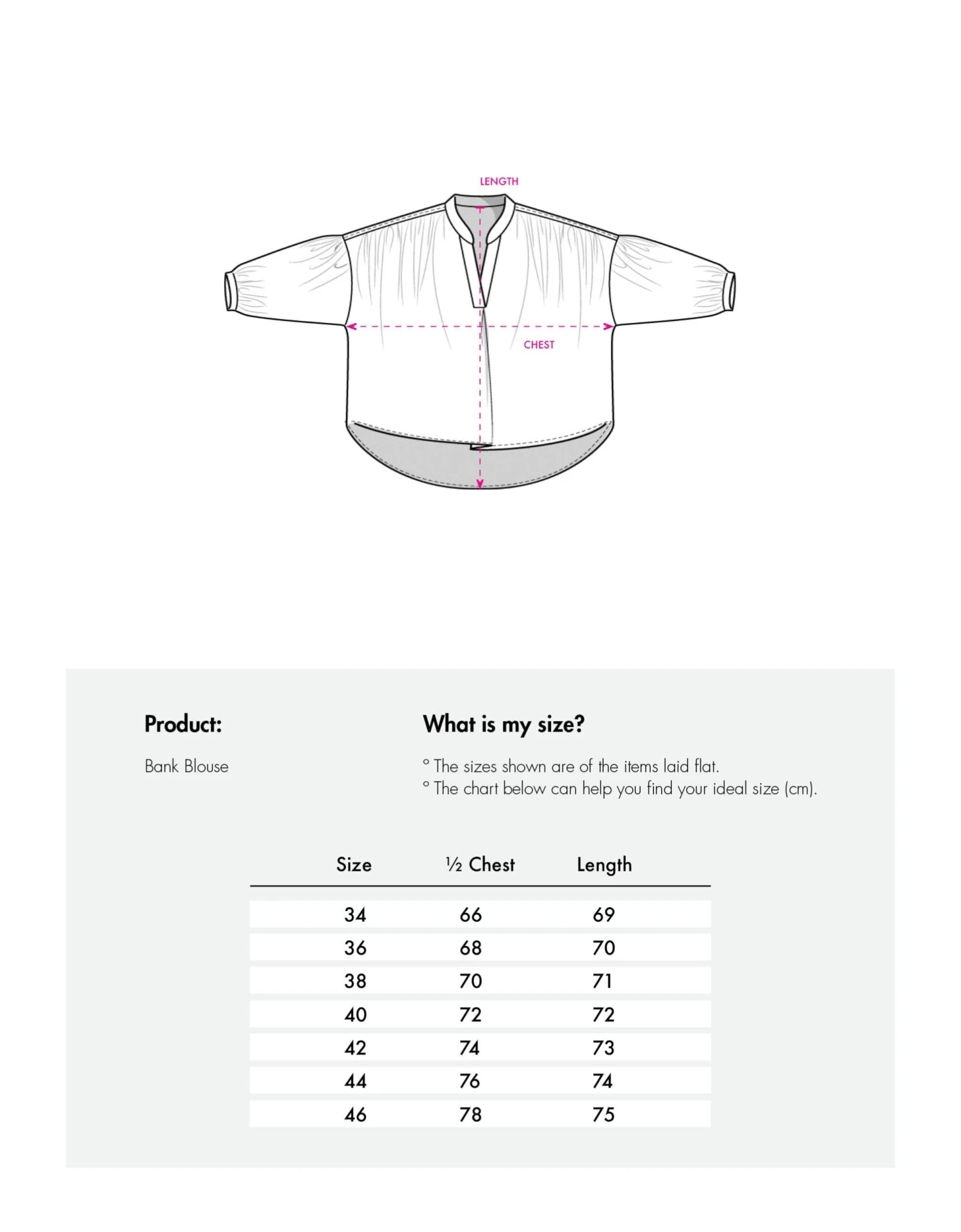 | Size | 32, 34, 36, 38, 40, 42, 44, 46 |