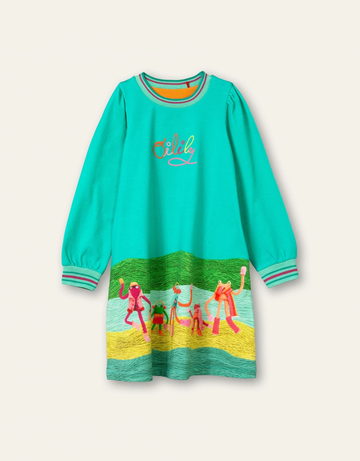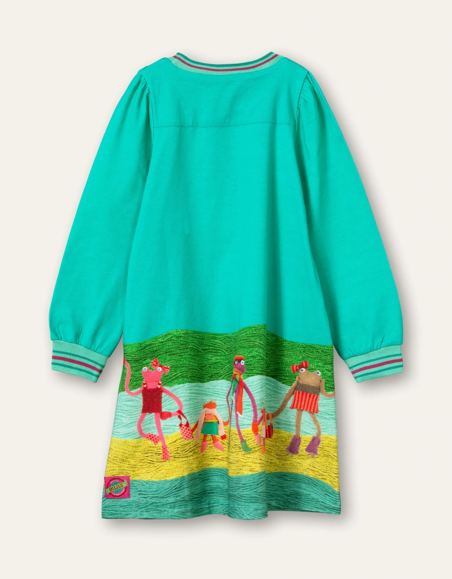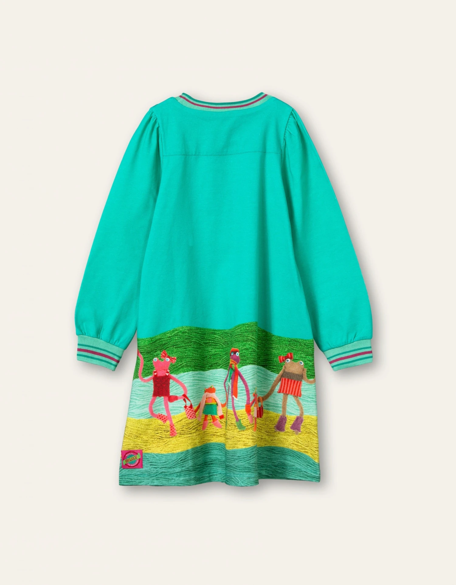 Wij weten wel van wol! Je kan zoveel meer met wol dan alleen breien. We gebruikten het om deze poppetjes, het landschap en onze naam te creëeren. Dit alles is te zien op deze zachte, flexibele jurk met subtiele pofmouwen en verstopte zijzakjes. – Organisch katoen met stretch – Crewneck – Regular fit – Gemaakt in Griekenland