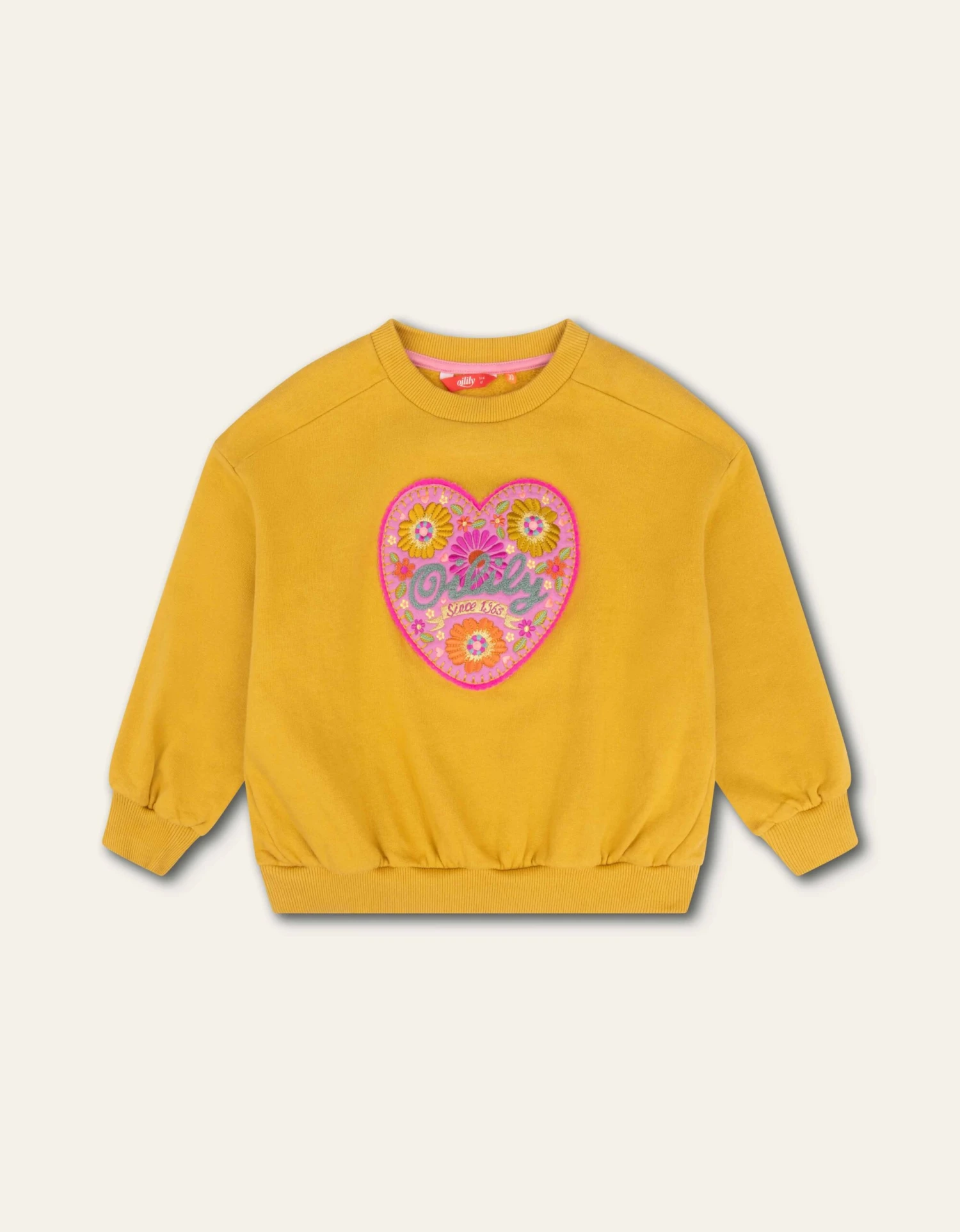 Een fijne, gezellige trui voor elke dag met een beeldige hartvormige badge. Geborduurd op je buik met onze naam en omringd door grote en kleine bloemen.