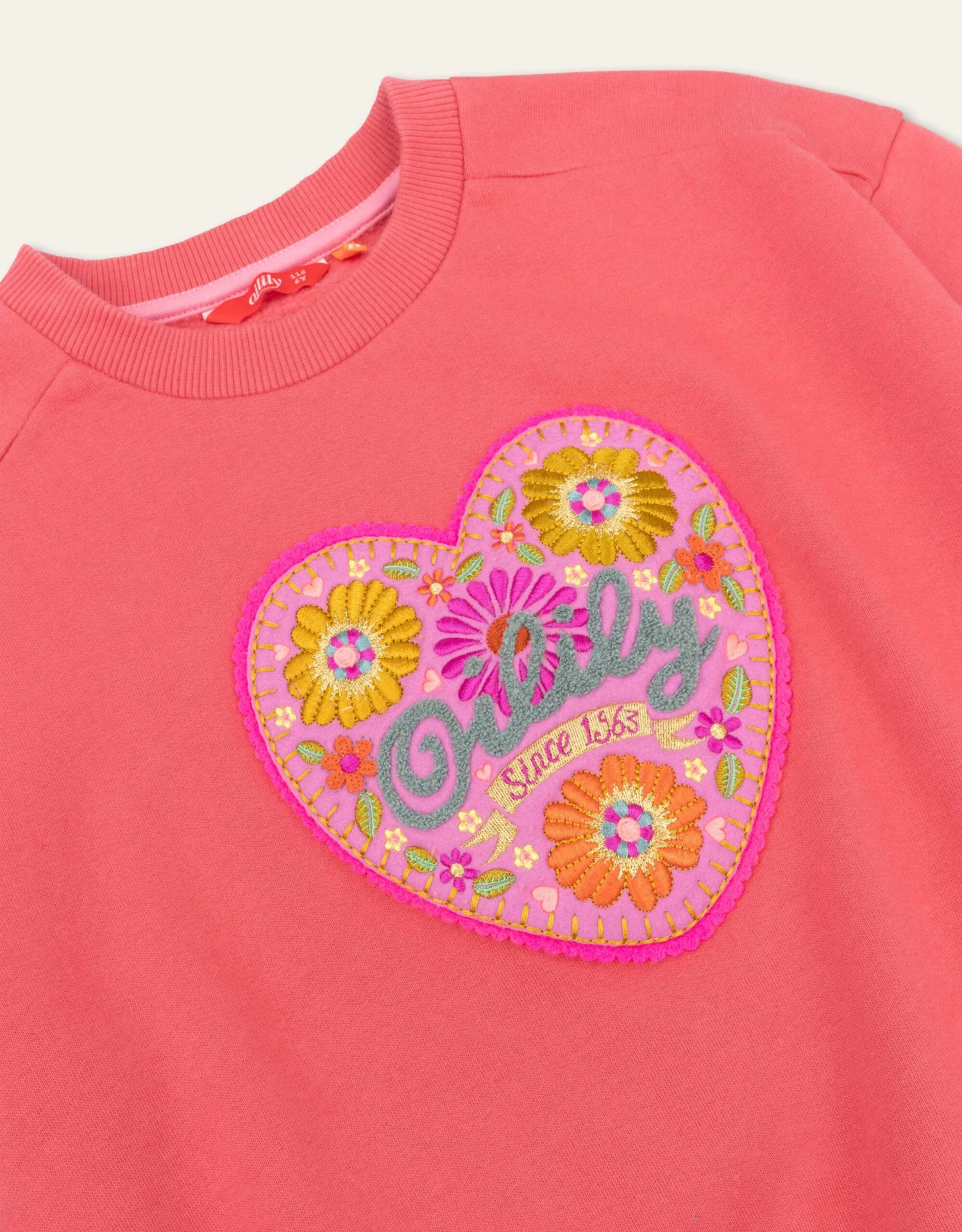 Een fijne, gezellige trui voor elke dag met een beeldige hartvormige badge. Geborduurd op je buik met onze naam en omringd door grote en kleine bloemen.
