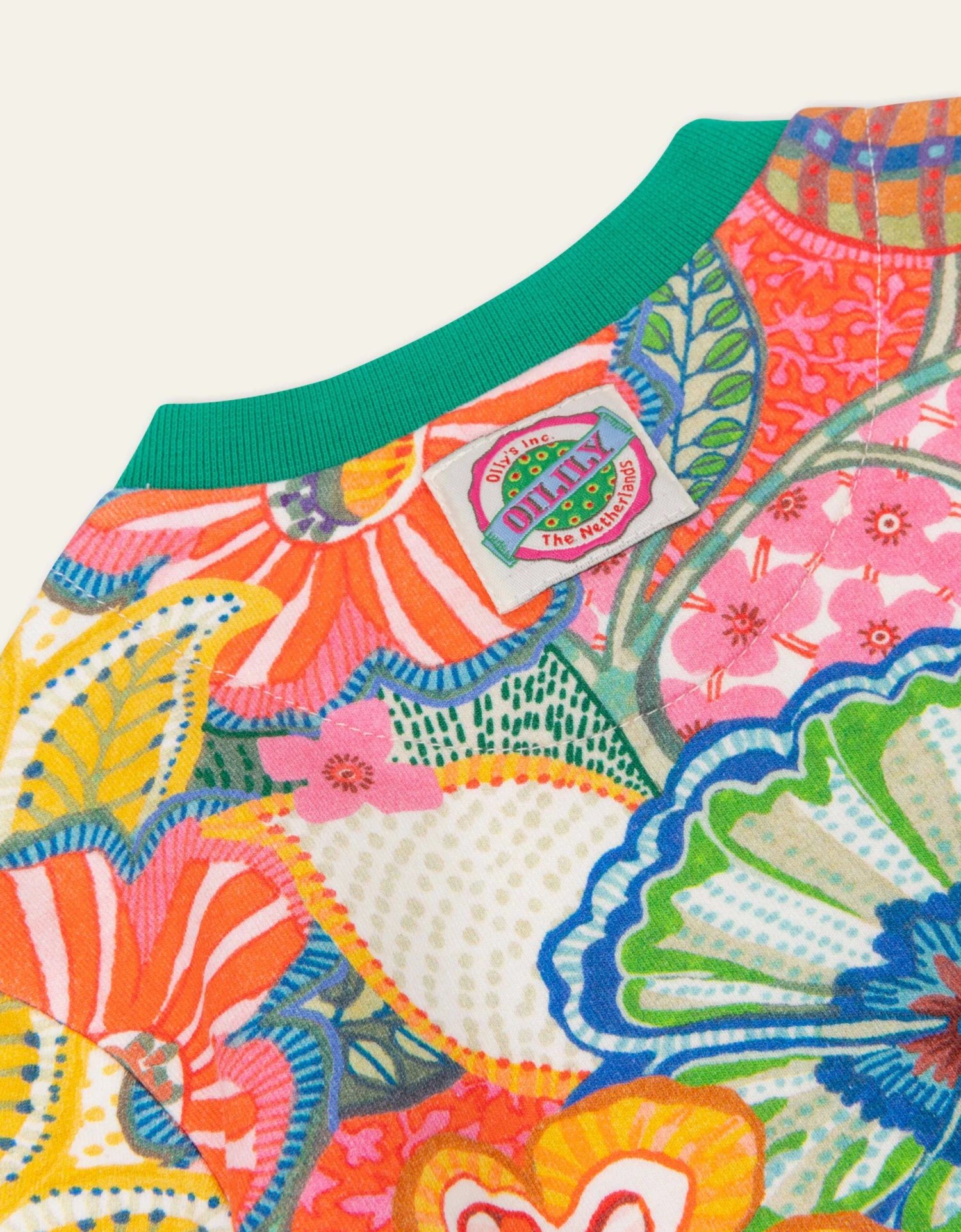 De bloemen op deze sweater zijn zo geschilderd dat de lijnen en kleuren in vloeiend in elkaar overlopen. Het staat beeldig op deze speelse sweater.