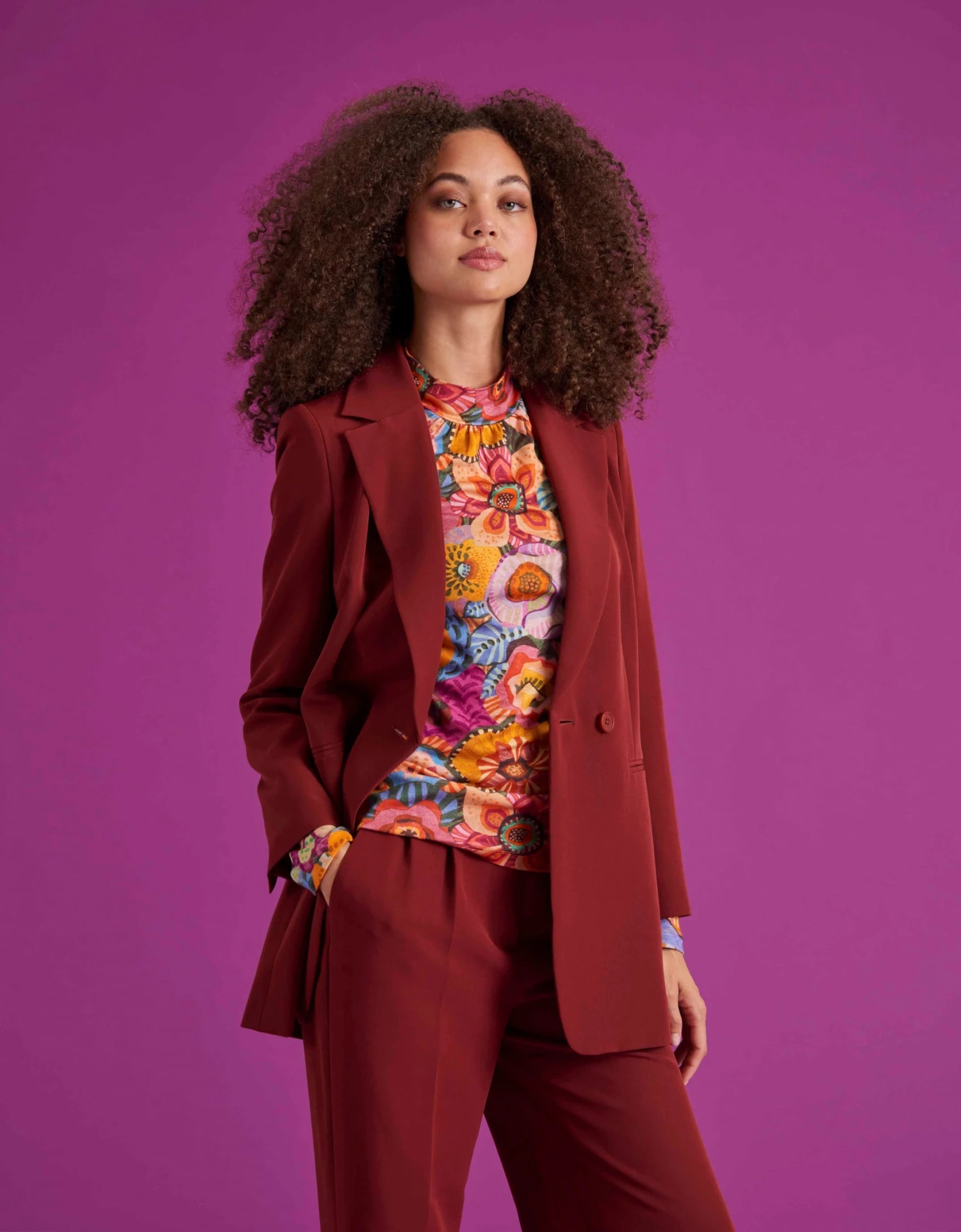 Business casual of één van de twee, met dit jasje pas je bij alle dresscodes. Het jasje heeft een lichte oversized fit met kleine overslag en is double-breasted met één knoop. Een subtiel contrast is te vinden aan de binnenkant in de bies en voering. Middenachter is een kleine split en voor plaatsten we paspelzakken voor een strakke, minimalistische lijn.