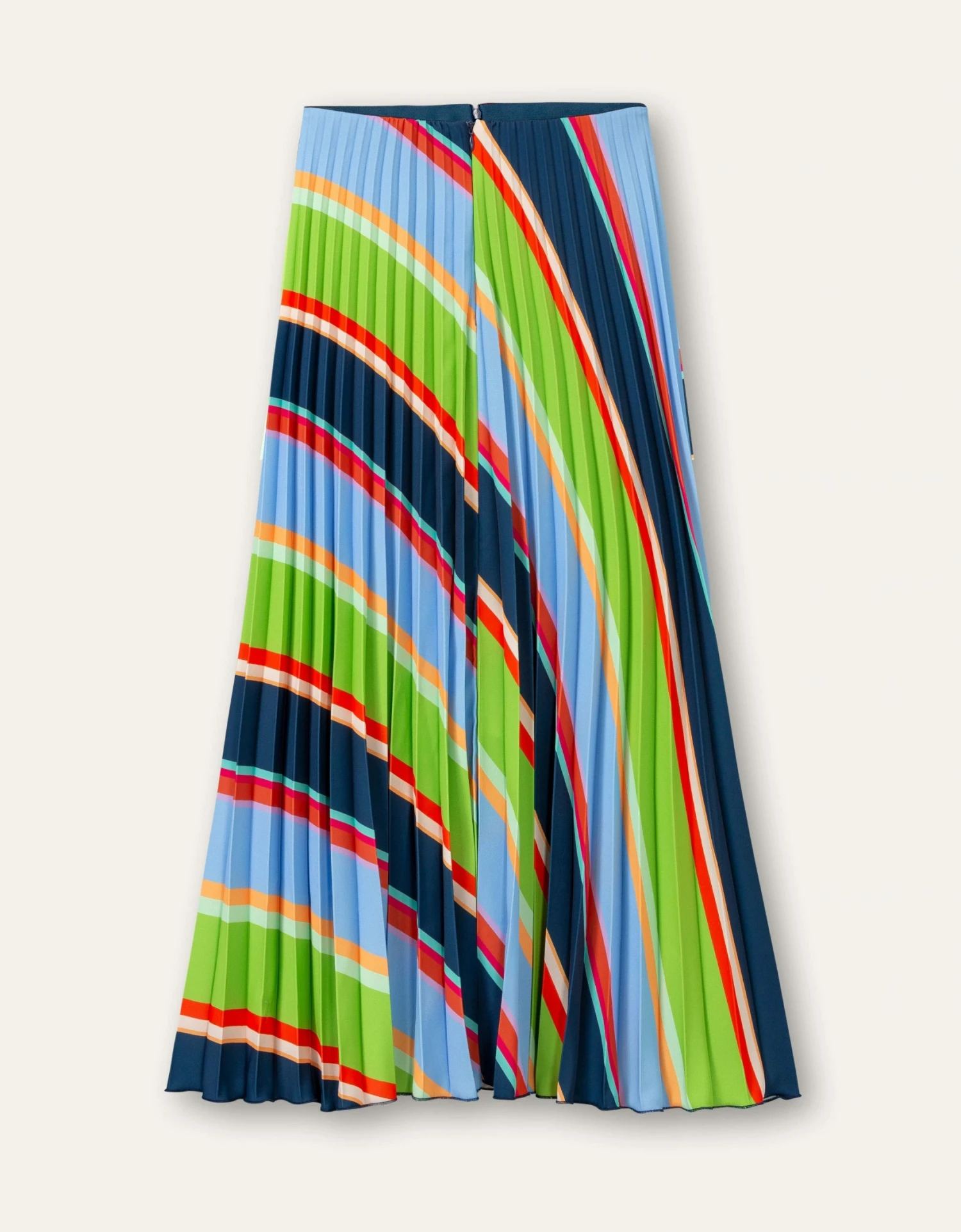 Prachtige, luxe rok met prettige plooien voor een geweldige fit. De gekleurde lijnen gaan diagonaal voor nog meer zwier als je beweegt. Met elastische tailleband en blinde zijrits.